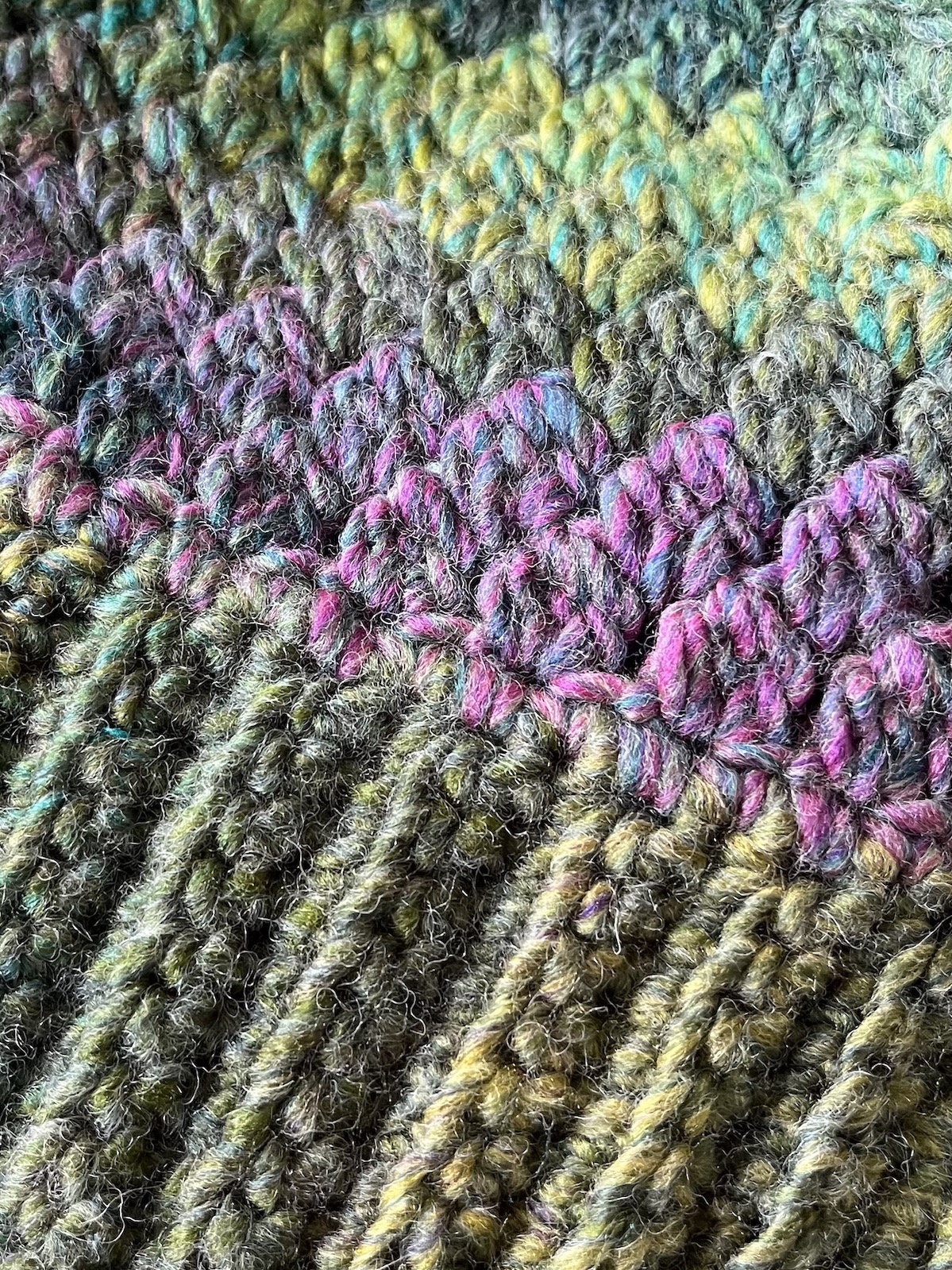 Made in a subtle mix of heather tones. Made using a very soft and chunky, yet lightweight, 20% Wool/80% acrylic mix yarn.